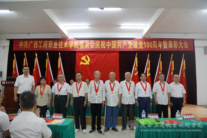 學院領(lǐng)導和榮獲“光榮在黨50年”紀念章老黨員代表合影