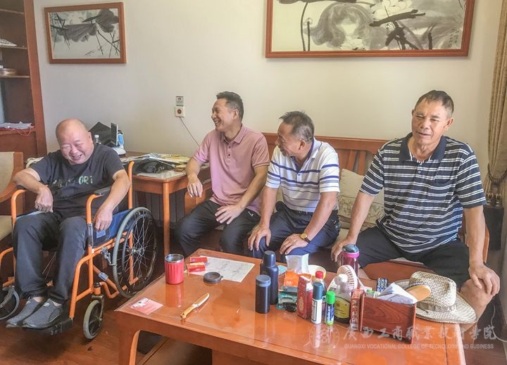 ?9月27日,學院工會(離退休辦公室)與學院離退休老黨員代表梁昆、黃偉學一行前往武鳴區(qū)里建太和自在城養(yǎng)老機構(gòu)走訪慰問身體欠佳、行動不便的退休老黨員張偉,并送黨史學習教育書籍上門,開展“送學上門”活動。