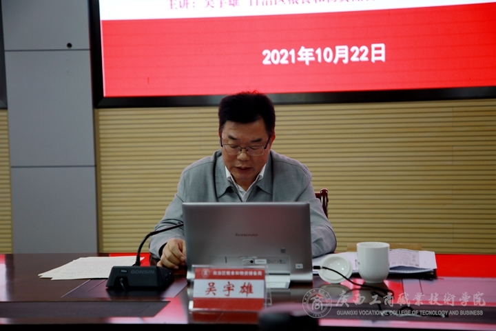 為深入學(xué)習(xí)貫徹好習(xí)近平總書記“七一”重要講話精神,10月22日下午,自治區(qū)糧食和物資儲(chǔ)備局局長吳宇雄應(yīng)邀到我院開展習(xí)近平總書記“七一”重要講話精神宣講,全體學(xué)院領(lǐng)導(dǎo),中層干部、分管工作負(fù)責(zé)人,基層黨組織書記、副書記、委員及60名學(xué)生代表參加宣講會(huì)。