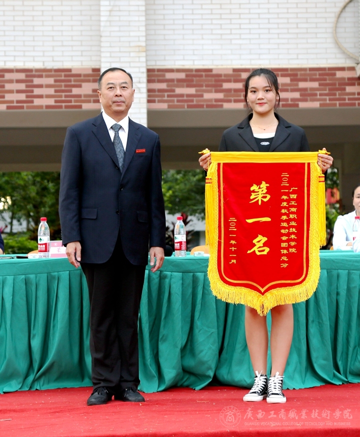 (學(xué)院領(lǐng)導(dǎo)為武鳴、鵬飛校區(qū)團(tuán)體總分第一名頒獎(jiǎng))