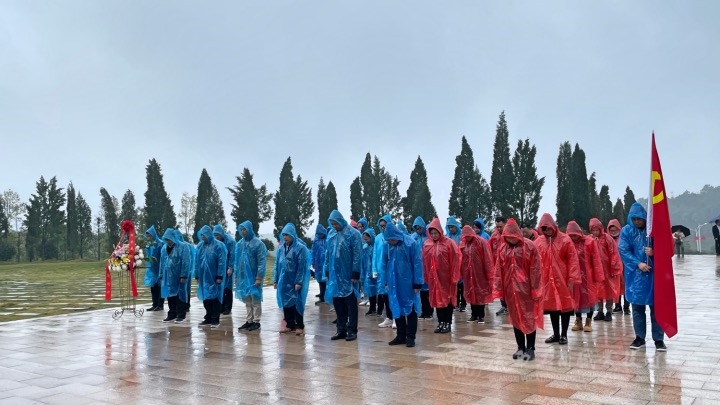 20日一早,學(xué)員們冒雨來(lái)到紅軍長(zhǎng)征湘江戰(zhàn)役紀(jì)念園,參觀湘江戰(zhàn)役紀(jì)念館,聽(tīng)到講解員講述的“陳樹(shù)湘斷腸明志”等壯烈革命歷史,大家仿佛來(lái)到87年前那場(chǎng)生死攸關(guān)、慘烈異常的湘江戰(zhàn)役現(xiàn)場(chǎng),感受到了革命先烈們的英勇無(wú)畏和對(duì)革命必將取得勝利的堅(jiān)定信念。隨后學(xué)員們冒雨“重走長(zhǎng)征路”來(lái)到腳山鋪?zhàn)钃魬?zhàn)戰(zhàn)場(chǎng)遺址,并在紅軍長(zhǎng)征湘江戰(zhàn)役紀(jì)念林憑吊廣場(chǎng)舉行憑吊儀式,全體默哀、三鞠躬并敬獻(xiàn)花籃以祭奠先烈英靈,緬懷烈士們的不朽功績(jī),并在紀(jì)念林前重溫入黨誓詞。
