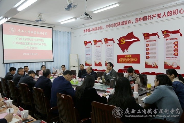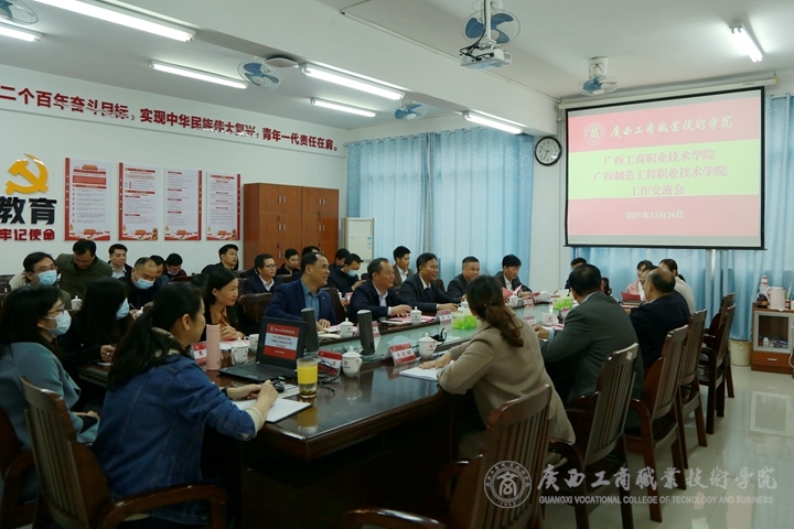 12月24日下午,廣西制造工程職業(yè)技術(shù)學(xué)院黨委副書記、院長(zhǎng)黃亮帶隊(duì)來(lái)我院鵬飛校區(qū)調(diào)研交流。學(xué)院黨委書記覃武云、院長(zhǎng)李維、黨委副書記蒙啟成及相關(guān)職能部門、二級(jí)學(xué)院負(fù)責(zé)人參加會(huì)議。