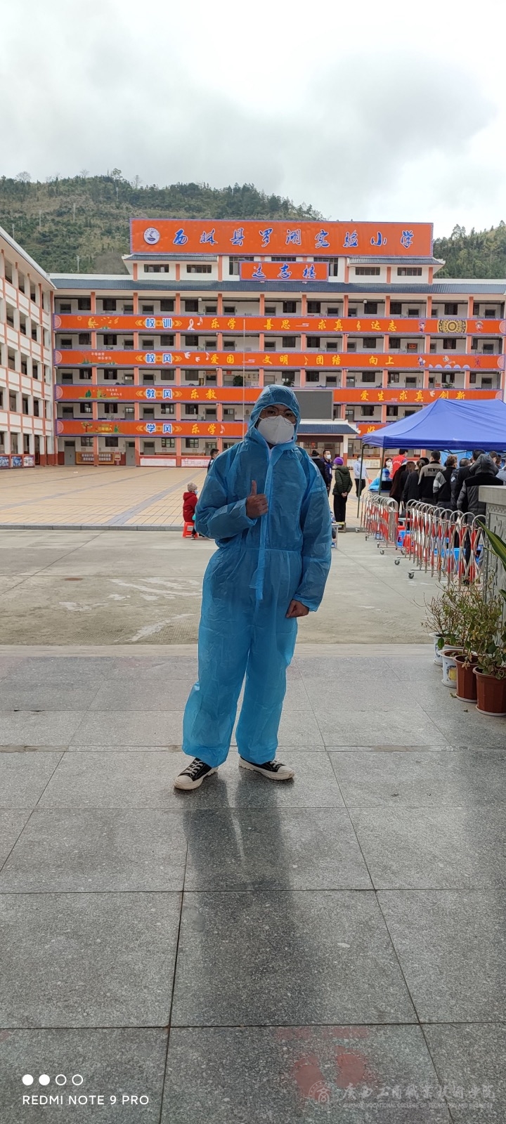 會(huì)計(jì)學(xué)院會(huì)計(jì)2005班的班子航同學(xué)在自己的家鄉(xiāng)廣西百色西林縣八達(dá)鎮(zhèn)擔(dān)任核酸檢測(cè)點(diǎn)引導(dǎo)員,他表示,防護(hù)疫情,我們當(dāng)代青年大學(xué)生理應(yīng)主動(dòng)擔(dān)當(dāng),盡自我所能地為自己的家鄉(xiāng)奉獻(xiàn)一點(diǎn)綿薄之力。