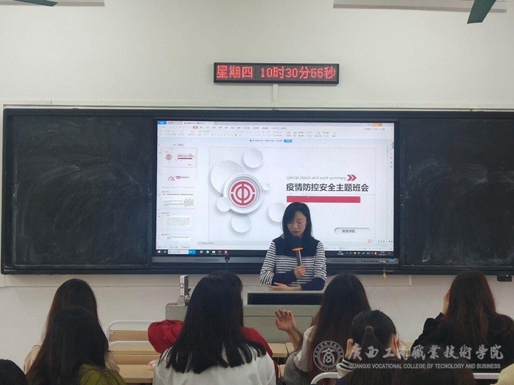(圖為經(jīng)貿(mào)學(xué)院輔導(dǎo)員石玉珍召開(kāi)“雙節(jié)”疫情防控和安全穩(wěn)定主題班會(huì))