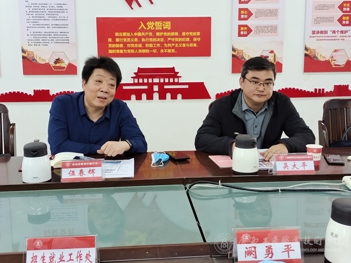 4月21日上午,自治區(qū)教育廳副廳長(zhǎng)伍春輝一行到我院開(kāi)展就業(yè)創(chuàng)業(yè)工作專題調(diào)研,學(xué)院副院長(zhǎng)闕勇平主持召開(kāi)調(diào)研座談會(huì),學(xué)院招生就業(yè)工作處、各二級(jí)學(xué)院負(fù)責(zé)人參加會(huì)議。