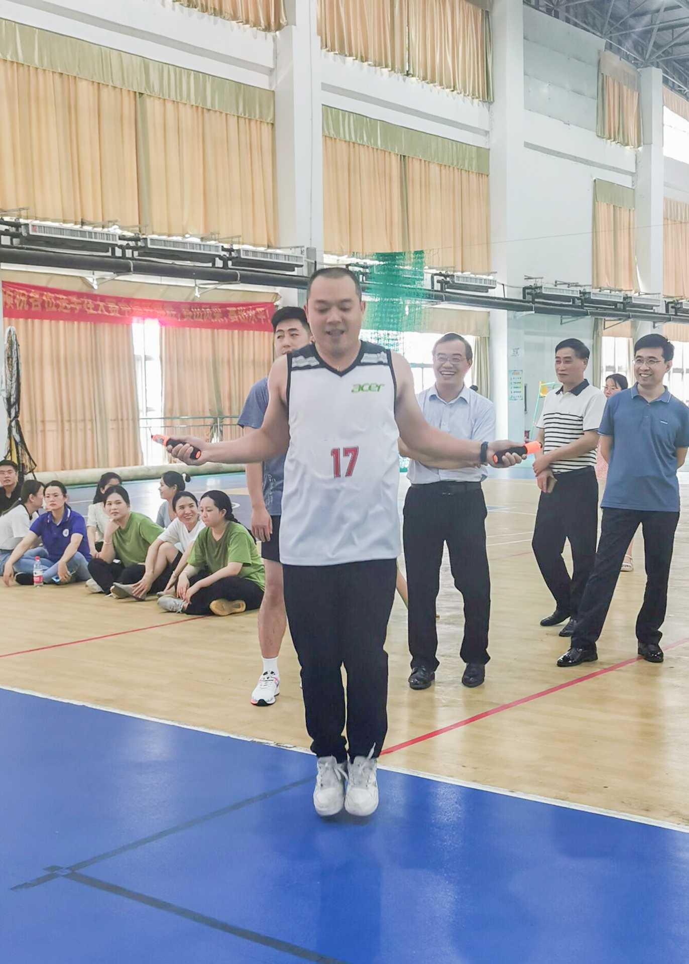 ?本次比賽設(shè)個(gè)人賽和團(tuán)體賽兩個(gè)項(xiàng)目,以工會(huì)分會(huì)、工會(huì)小組為單位參賽。其中,個(gè)人跳繩以一分鐘跳繩次數(shù)為最終成績;團(tuán)體賽以5分鐘跳繩次數(shù)為最終成績。在加油吶喊聲中,參賽選手依次出場,大家奮力揮動(dòng)著手中的跳繩,個(gè)個(gè)身輕如燕、充滿活力。團(tuán)體賽中,各組選手團(tuán)結(jié)一致,配合默契,賽場上歡聲笑語不斷,為校園增添了勃勃生機(jī)。歡呼聲、吶喊聲、歡笑聲此起彼伏,現(xiàn)場氣氛分外熱烈。經(jīng)過激烈的角逐,通識(shí)教育學(xué)院工會(huì)分會(huì)、經(jīng)貿(mào)學(xué)院工會(huì)分會(huì)獲得一等獎(jiǎng);管理學(xué)院工會(huì)分會(huì)、會(huì)計(jì)學(xué)院工會(huì)分會(huì)、第六工會(huì)小組、財(cái)金學(xué)院工會(huì)分會(huì)獲得二等獎(jiǎng);第八工會(huì)小組、信息與設(shè)計(jì)學(xué)院工會(huì)分會(huì)、第五工會(huì)小組、第一工會(huì)小組、第四工會(huì)小組獲得三等獎(jiǎng);個(gè)人賽中陳比樂、尹成功老師獲得一等獎(jiǎng);霍艷、李朝鋒老師獲得二等獎(jiǎng);曾慶鳳、何娟、曹婧、玉慶娟、梁磊、張東冬、呂周、王子敬獲得三等獎(jiǎng)。