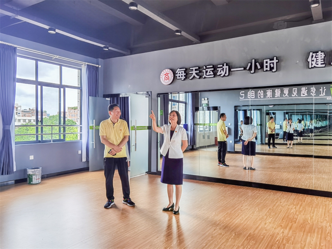 ? ? ? 學(xué)院職工之家健康運(yùn)動(dòng)中心、職工之家影音活動(dòng)室4月初開始建設(shè),6月初竣工。健康運(yùn)動(dòng)中心面積為323平方米,購置了臺(tái)球桌、動(dòng)感單車、跑步機(jī)、橢圓機(jī)、立式健身車、臥式健身車等器材,滿足教職工的不同健身需求。影音活動(dòng)室80平方米,融合了新時(shí)代理論宣講、教育服務(wù)、文化服務(wù)、科技與科普服務(wù)等內(nèi)容。覃武云書記、紀(jì)委書記韋云鳳等同志分別查看了職工之家健康運(yùn)動(dòng)中心和影音活動(dòng)室,詳細(xì)了解了它們的建設(shè)使用和管理情況。