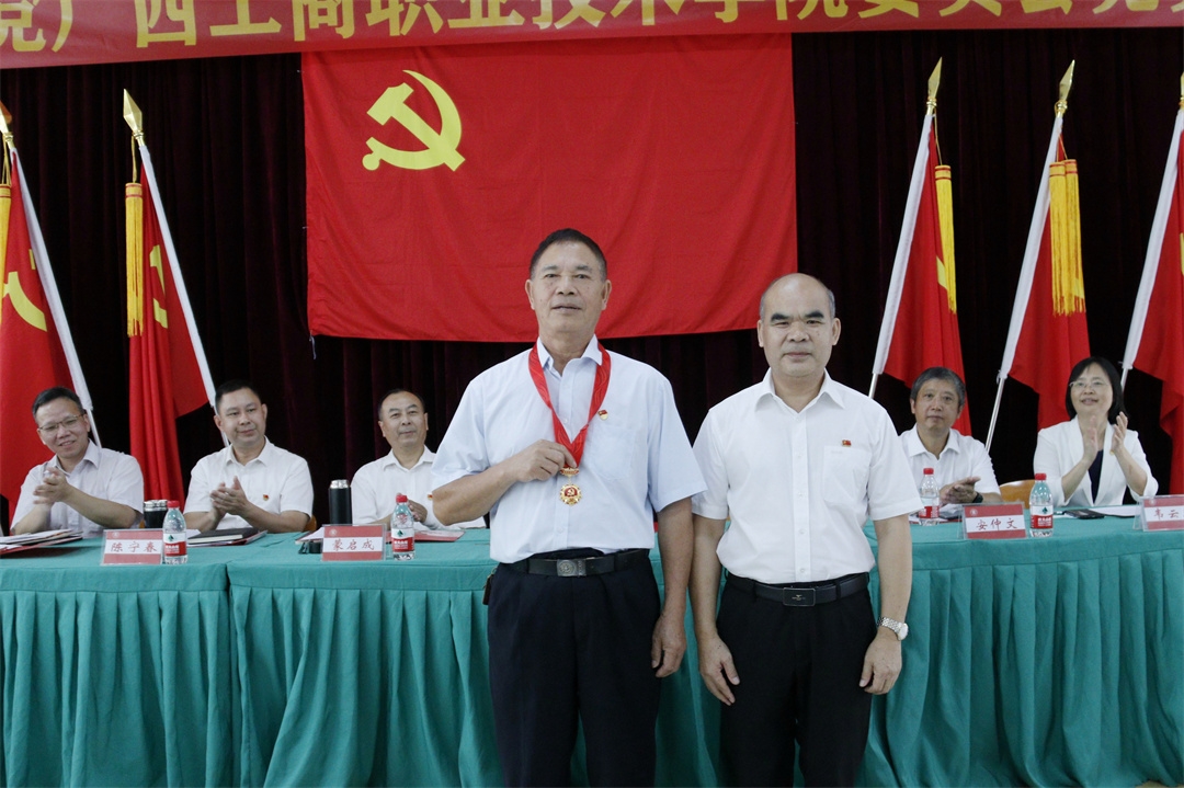 ???在莊嚴(yán)的國歌奏唱結(jié)束后,首先由2022年第一批新發(fā)展黨員代表進(jìn)行入黨宣誓。隨后覃武云書記為黃偉學(xué)同志頒發(fā)“光榮在黨50年”紀(jì)念章。