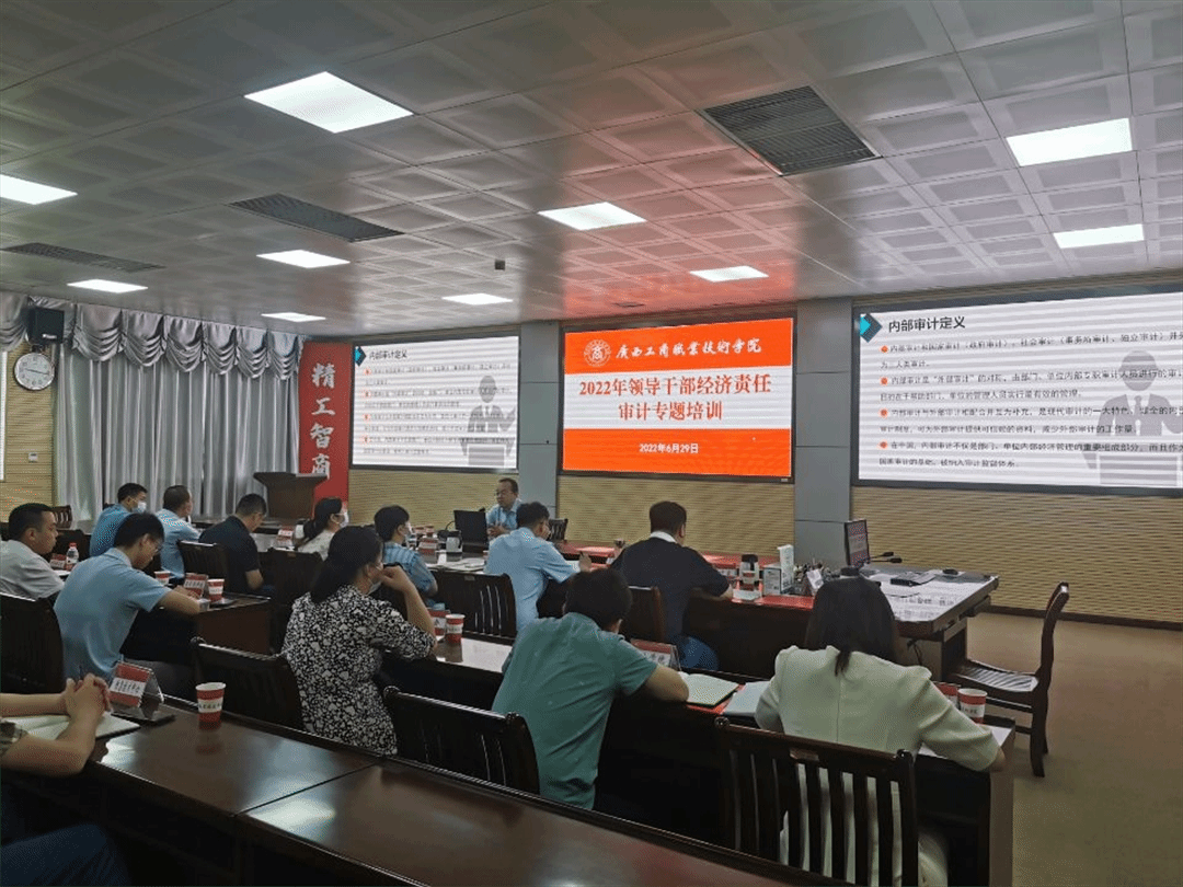 為增強(qiáng)學(xué)院領(lǐng)導(dǎo)干部財(cái)經(jīng)法紀(jì)意識(shí)和底線意識(shí),自覺接受審計(jì)監(jiān)督,依法決策、民主決策、科學(xué)決策,正確履行領(lǐng)導(dǎo)干部經(jīng)濟(jì)責(zé)任,促進(jìn)教育事業(yè)健康可持續(xù)發(fā)展,我院特邀廣西財(cái)經(jīng)學(xué)院瞿曉龍副教授開展“2022年領(lǐng)導(dǎo)干部經(jīng)濟(jì)責(zé)任審計(jì)”專題培訓(xùn),各部門、各單位主要負(fù)責(zé)人及負(fù)責(zé)采購、資產(chǎn)、工程、財(cái)務(wù)、合同的工作人員參加了此次培訓(xùn)。培訓(xùn)由學(xué)院院長(zhǎng)李維主持。