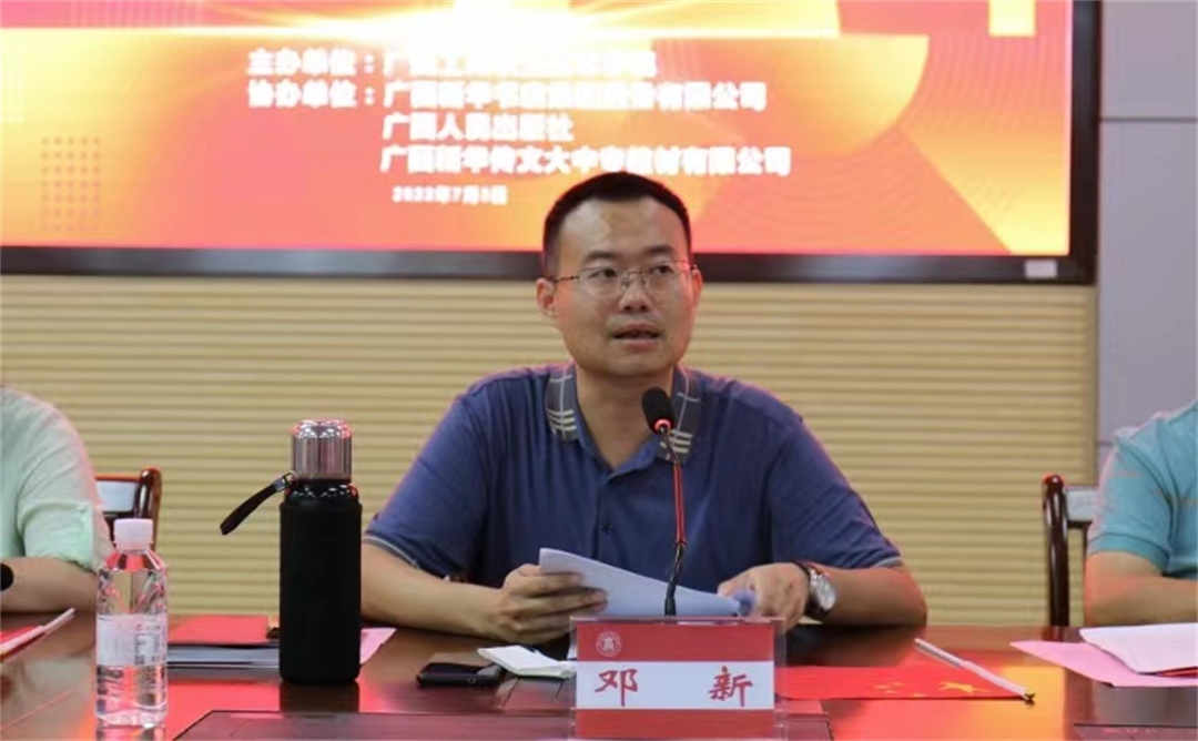 2022年7月3日,“立德樹人潤青心 經(jīng)典書香育心人”紅色閱讀分享交流會(huì)在我院2119會(huì)議室舉行,自治區(qū)黨員教育中心四級(jí)調(diào)研員鄧新、廣西人民出版社副社長蔣文娜、廣西新華傳文大中專教材公司總經(jīng)理廖愛娟到我校參加分享會(huì)。學(xué)院副院長安仲文、學(xué)院團(tuán)委相關(guān)老師及青年馬克思主義培養(yǎng)工程培訓(xùn)班全體學(xué)員共同出席本次會(huì)議。