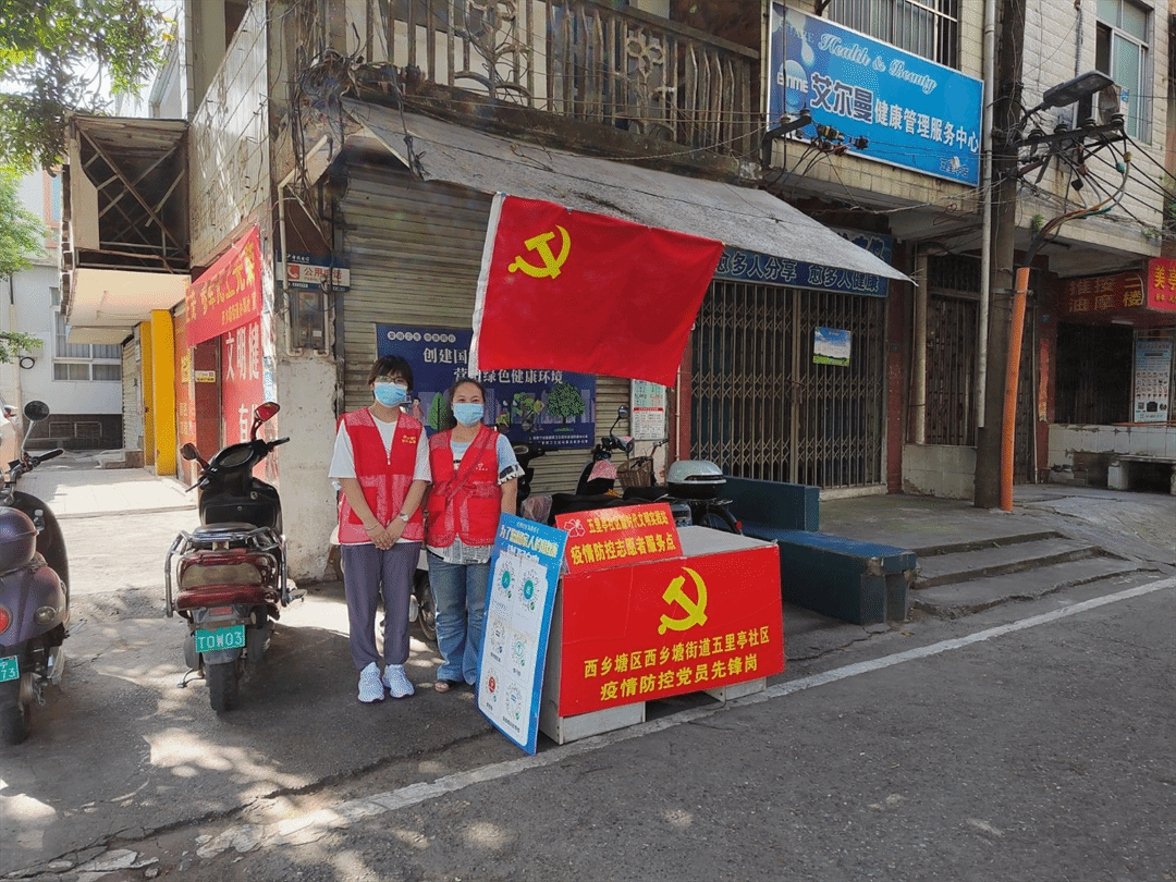 (馬克思主義學(xué)院院長趙婷、王開榮老師在五里亭社區(qū)參加志愿活動)