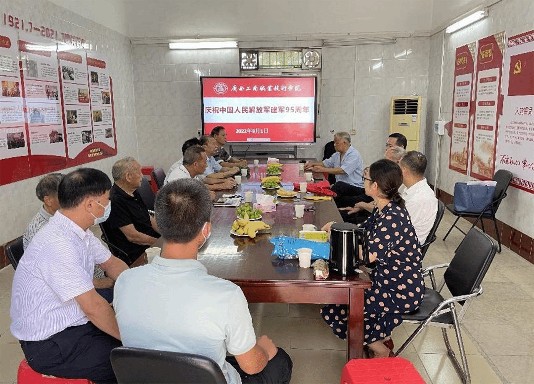 為慶祝中國(guó)人民解放軍建軍95周年,傳承擁軍優(yōu)良傳統(tǒng),8月1日學(xué)院組織召開了八一建軍節(jié)退役軍人慰問座談會(huì)。學(xué)院院長(zhǎng)李維、黨委副書記蒙啟成、學(xué)院黨委委員、黨委組織部部長(zhǎng)鄭華出席座談會(huì),學(xué)院10名退役軍人代表參加座談會(huì)。