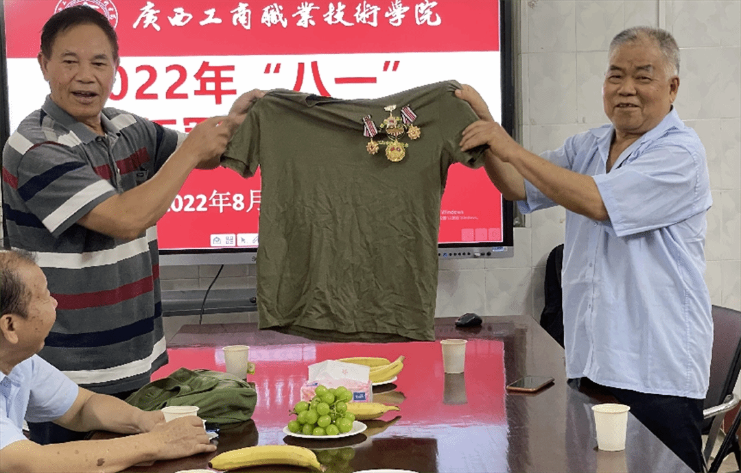 與會(huì)期間,學(xué)院退役軍人代表們暢所欲言,回顧了他們各自的軍旅歲月,暢談了他們?cè)诓筷?duì)的生活以及退役后在單位的奮斗經(jīng)歷和感受。在部隊(duì)服役17年的73歲閉慶煊老師說“我時(shí)刻聽從黨的召喚,愛黨、愛國(guó)家、愛學(xué)院的初心永不變”。參加過援老抗美、對(duì)越自衛(wèi)反擊戰(zhàn)等多次戰(zhàn)役的71歲黃偉學(xué)老師在現(xiàn)場(chǎng)吟誦了自己編寫的一首詩“十七八歲到軍營(yíng),援老抗美振叢林,國(guó)防施工鉆叢林,自衛(wèi)反擊呈英豪”。代表們分別對(duì)學(xué)院黨委的關(guān)心關(guān)愛表達(dá)了感謝,并且表示雖然退役了,但他們?nèi)匀槐3种娙吮旧?,與學(xué)院一起,以實(shí)干實(shí)績(jī)迎接黨的二十大勝利召開。