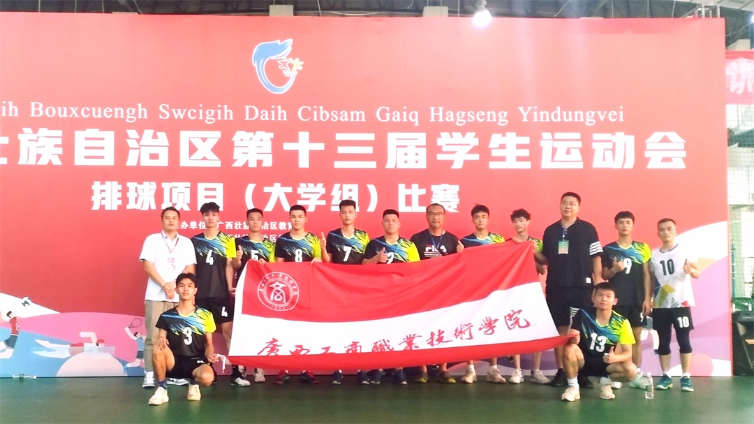 廣西壯族自治區(qū)學生運動會是區(qū)內(nèi)學生運動會中規(guī)格最高、規(guī)模最大、水平最高的運動會。2022年7月15日,廣西第十三屆學生運動會排球比賽在廣西師范大學雁山校區(qū)如期舉行。我院鄧淇元、陳凱、羅世健幾位老師擔任教練帶隊參加高職高專男子組比賽,經(jīng)過過關斬將,在7月23日的決賽中,男排隊員充分展示了頑強拼搏的廣商院精神,在先失一局的情況下,迅速調整比賽狀態(tài)進行拼殺,最終戰(zhàn)勝對手,獲得冠軍。這是我院排球隊第一個全區(qū)比賽冠軍,也是我院三大球集體比賽的第一個廣西冠軍。