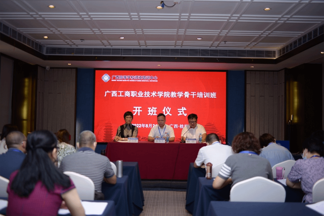 2022年8月21日上午,由我院組織,廣西高等學(xué)校師資培訓(xùn)中心承辦的2022年教學(xué)管理干部及骨干教師能力提升培訓(xùn)班開班儀式在廣西桂林市悅璟酒店六樓會(huì)議廳舉行。開班儀式由廣西高等學(xué)校師資培訓(xùn)中心副主任陳治萍主持。廣西高等學(xué)校師資培訓(xùn)中心專職副主任賴仿和我院副院長闕勇平分別為開班儀式致辭。我院57名教學(xué)管理干部及骨干教師參加了開班儀式。