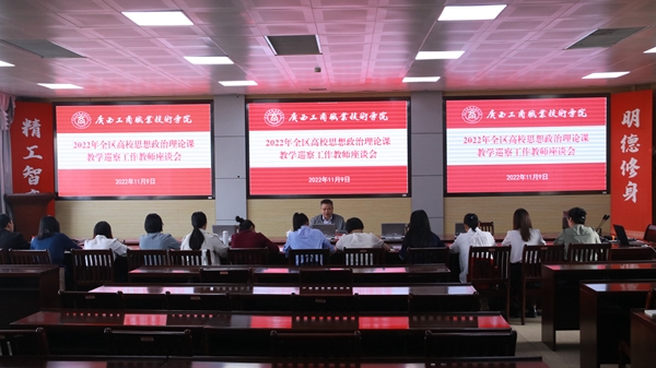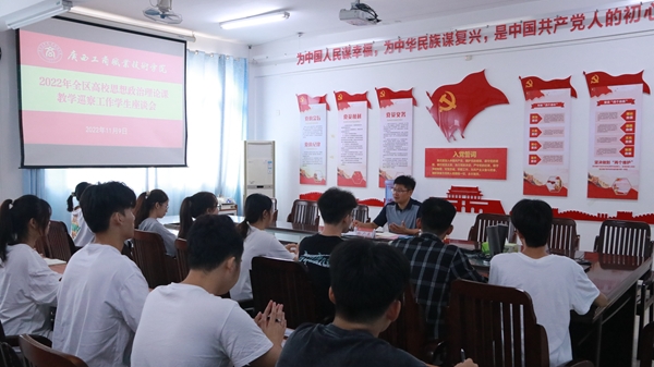 11月9日上午,以廣西民族大學(xué)黨委副書記陳銘彬教授為組長(zhǎng)的全區(qū)高校思想政治理論課教學(xué)巡察組專家一行四人蒞臨我院巡察指導(dǎo)思想政治理論課建設(shè)情況。本次巡察工作的主要內(nèi)容有黨的二十大精神進(jìn)課堂的落實(shí)情況、習(xí)近平新時(shí)代中國(guó)特色社會(huì)主義思想概論課開(kāi)設(shè)情況、中央和自治區(qū)關(guān)于深化新時(shí)代學(xué)校思想政治理論課改革創(chuàng)新相關(guān)文件的貫徹落實(shí)情況以及思想政治理論課建設(shè)的相關(guān)重要指標(biāo)落實(shí)情況。