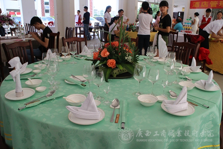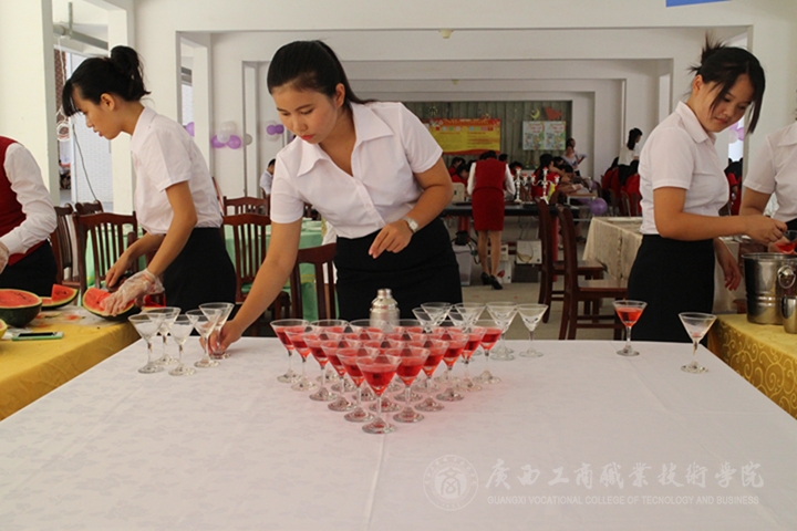 在酒店管理專業(yè)學(xué)生的西餐擺臺、中餐擺臺、餐巾花折疊、調(diào)酒表演等既展示出學(xué)生嫻熟的專業(yè)技能,也體現(xiàn)學(xué)院嚴(yán)謹(jǐn)專業(yè)的教學(xué)。