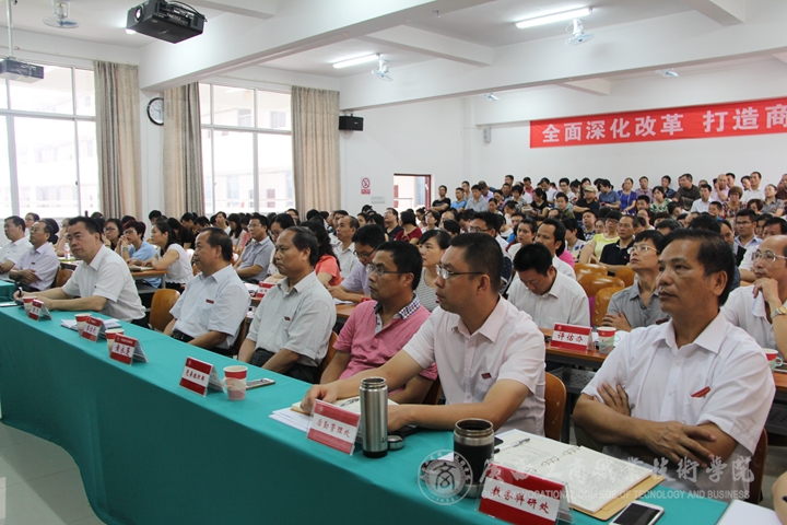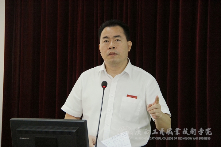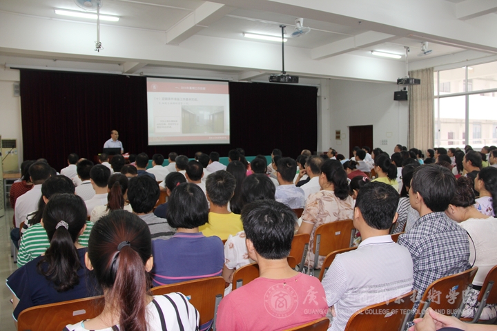 大會上,覃武云書記作了開學(xué)工作報告。在報告中覃書記首先回顧2015年暑假期間各項工作情況。他從黨建、招生就業(yè)、后勤基建、人才隊伍建設(shè)、教育教學(xué)改革、學(xué)生工作等十個方面回顧總結(jié)了暑假期間的各項工作開展情況。覃書記還就開學(xué)初期工作進(jìn)行了安排。