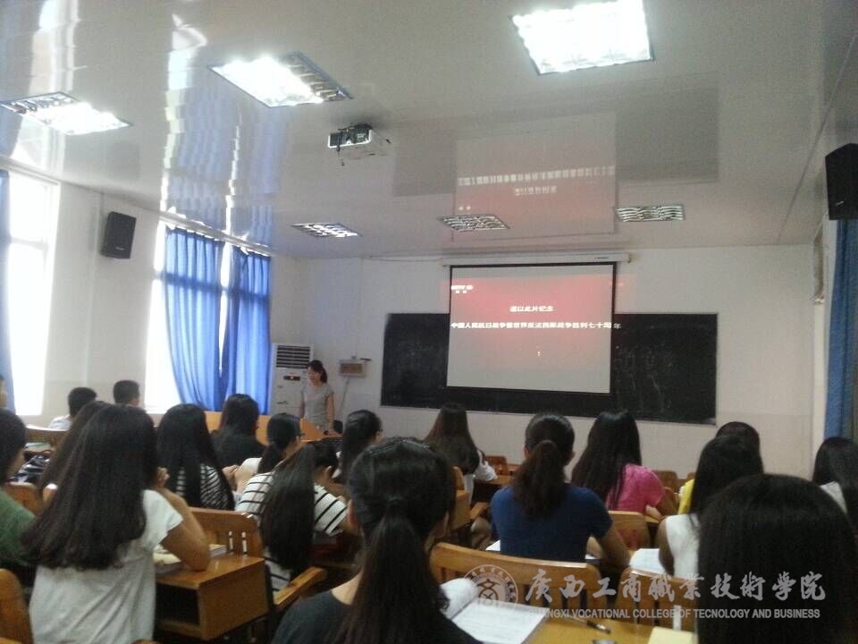 為了讓同學(xué)們銘記悲慘的歷史,激發(fā)學(xué)生的愛國(guó)熱情,進(jìn)一步弘揚(yáng)愛國(guó)主義精神。我系于9月1日開展了關(guān)于“勿忘國(guó)恥 ·圓夢(mèng)中華”主題班會(huì)。主題班會(huì)主要圍繞“紀(jì)念中國(guó)人民抗日戰(zhàn)爭(zhēng)暨反法西斯戰(zhàn)爭(zhēng)勝利70周年”等展開。同學(xué)們觀看《東方主戰(zhàn)場(chǎng)》等教育視頻,了解了抗戰(zhàn)勝利的偉大意義。并且了解了中華人民同仇敵愾,前赴后繼,英勇斗爭(zhēng)的全民族的偉大抗戰(zhàn)精神,他們用鮮血和生命譜寫了正義戰(zhàn)勝邪惡、光明戰(zhàn)勝黑暗、進(jìn)步戰(zhàn)勝反動(dòng)的英雄史詩(shī)。