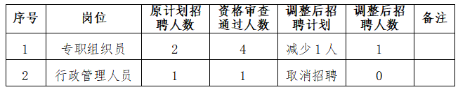(一)專職組織員崗位招聘計劃人數(shù)調(diào)整為1人。