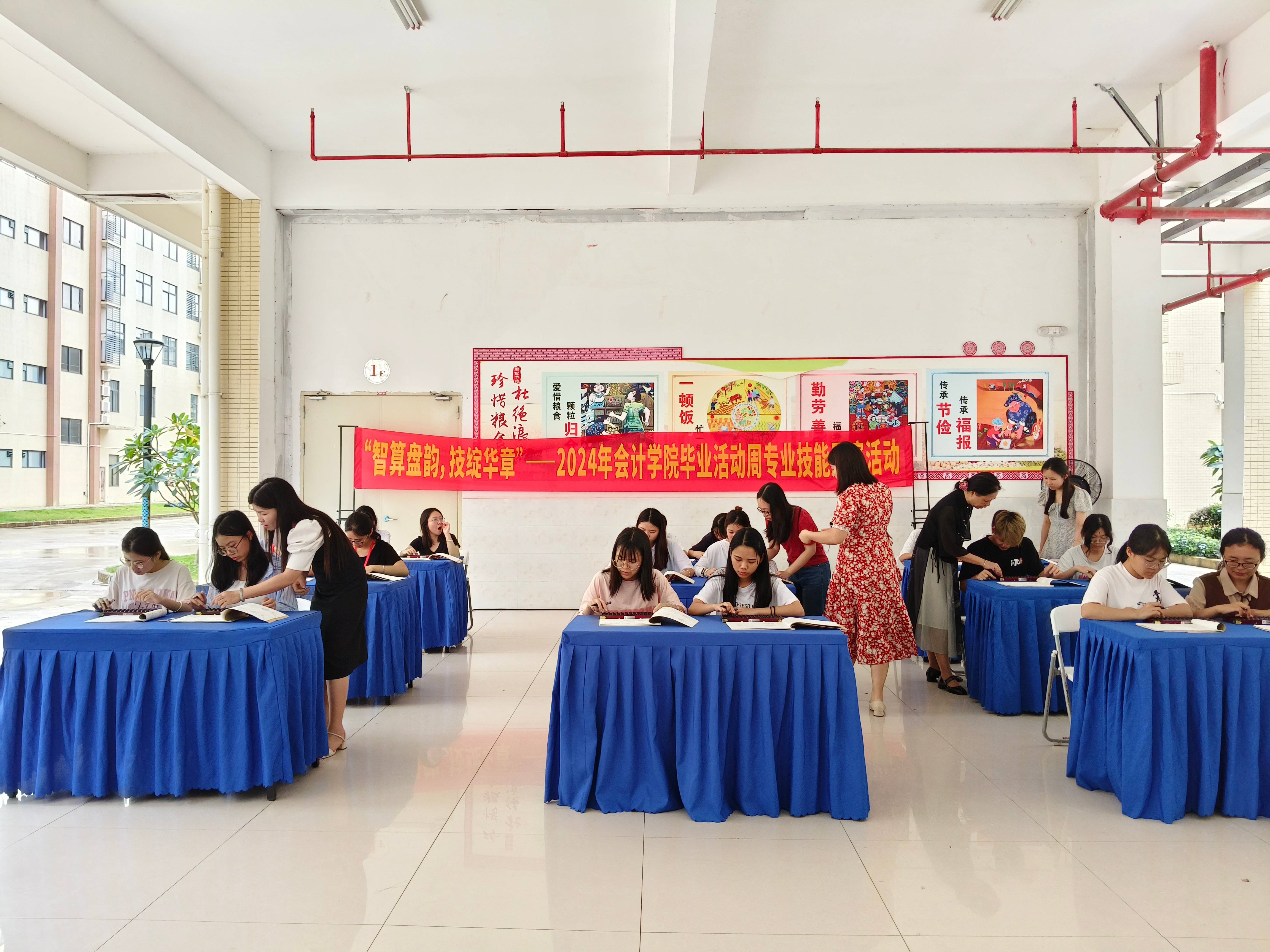 為了在2024年畢業(yè)活動周上全面展示智慧會計專業(yè)群的特色和專業(yè)建設(shè)成果,會計學(xué)院2024年6月26日下午在武鳴校區(qū)A5架空層舉辦“乘珠算之韻味,展技能之風(fēng)華”技能比賽,以珠算競賽和財務(wù)機(jī)器人對話的方式展示傳統(tǒng)會計文化與數(shù)字經(jīng)濟(jì)時代會計的發(fā)展。