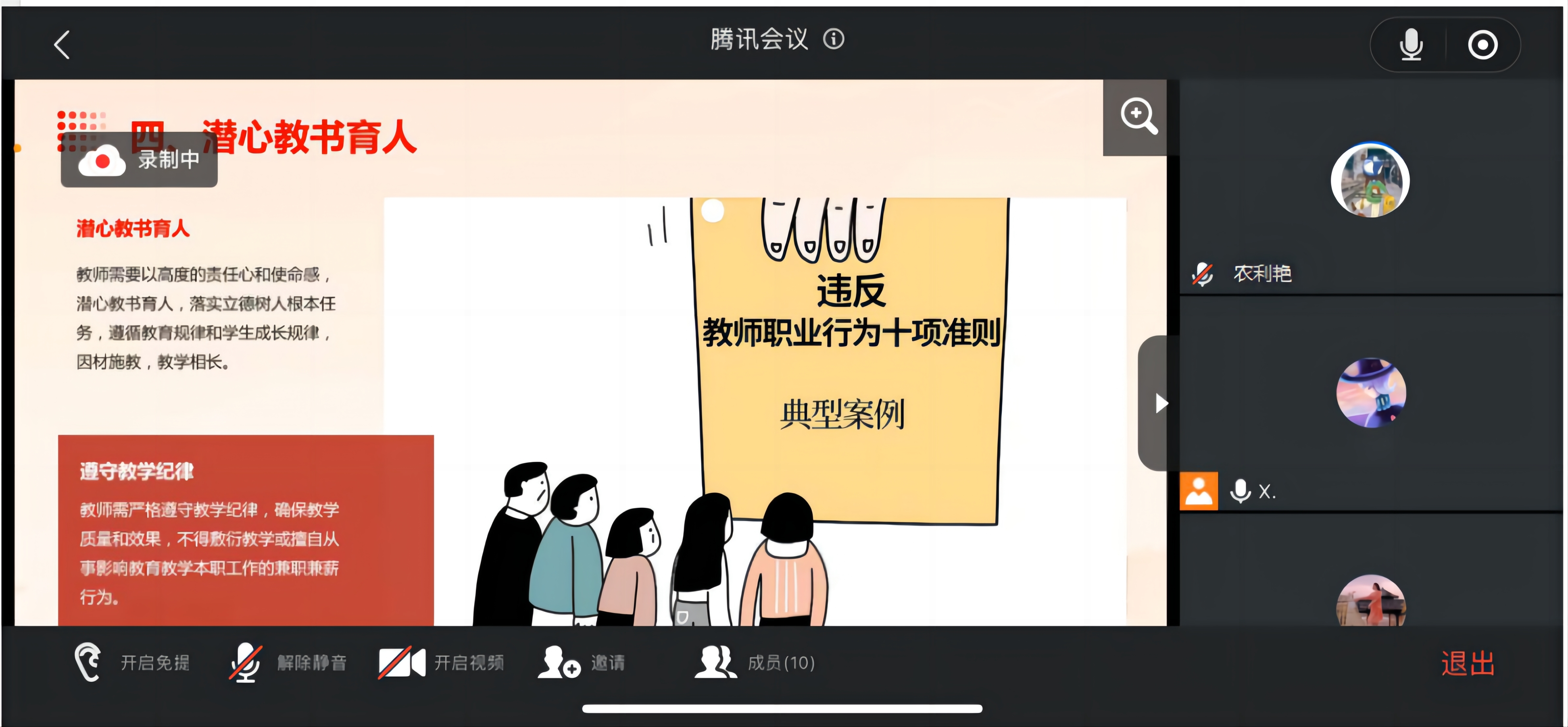 座談會(huì)上,粟衛(wèi)紅院長首先領(lǐng)學(xué)了《新時(shí)代高校教師職業(yè)行為十項(xiàng)準(zhǔn)則》(以下簡稱《準(zhǔn)則》),緊緊圍繞重要意義、豐富內(nèi)涵、實(shí)踐要求對該《準(zhǔn)則》進(jìn)行逐條逐句地解讀;與外聘教師共同學(xué)習(xí)了《廣西工商職業(yè)技術(shù)學(xué)院教師師德考核辦法》。粟衛(wèi)紅院長還列舉了高校教師違反《準(zhǔn)則》和師德師風(fēng)的現(xiàn)實(shí)案例,警示全體外聘教師牢記教書育人使命,在認(rèn)真完成好教學(xué)任務(wù)的基礎(chǔ)上,更要恪守教師職業(yè)操守,弘揚(yáng)優(yōu)良師德師風(fēng),始終把紀(jì)律作為懸在頭頂?shù)摹叭呃麆Α?,常懷敬畏之心,常修廉潔之德,?jiān)持以德立身、以德立學(xué)、以德施教、以德育德,自覺扣好廉潔從教“第一??圩印?。