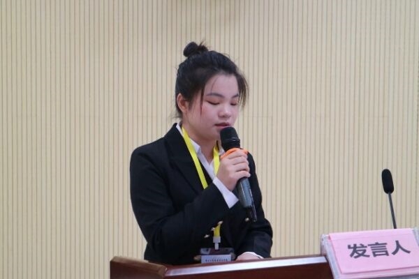 圖為22級學(xué)生會(huì)主席團(tuán)成員溫漣萍發(fā)言