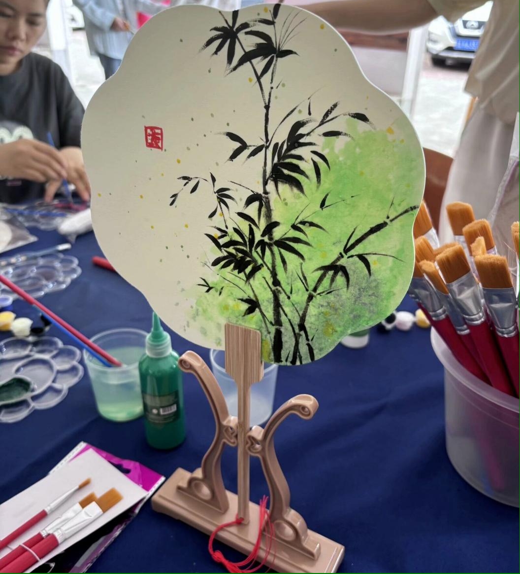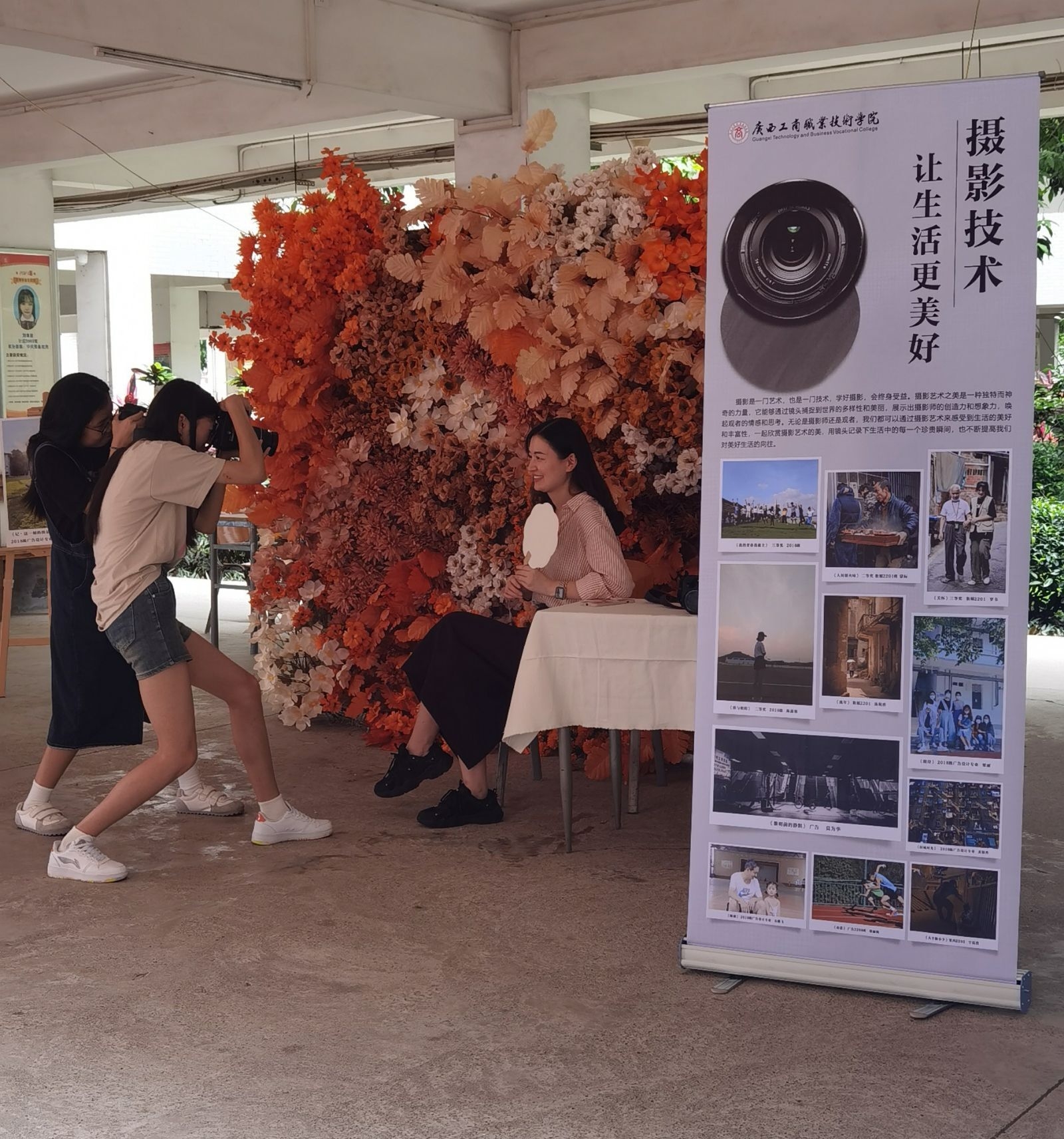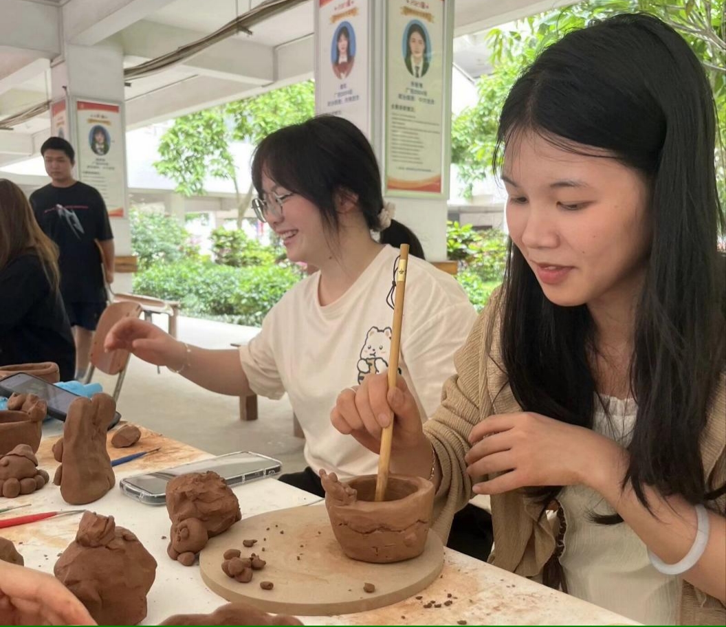當(dāng)天下午,鵬飛校區(qū)教學(xué)樓架空層“攝影技術(shù),讓生活更美好”的活動(dòng)現(xiàn)場(chǎng),學(xué)生手持相機(jī),或捕捉校園內(nèi)的美麗瞬間,或聚焦于師生們忙碌而充滿生機(jī)的身影。不僅展現(xiàn)了他們的攝影技術(shù),更傳遞出他們對(duì)生活的熱愛與感悟。“體驗(yàn)紅陶制作,傳承非遺文化”的攤位也吸引了不少人的目光。在這里,師生們親自動(dòng)手,從和泥、拉坯到刻花,紅陶作品在師生們的手中逐漸成形,充滿了創(chuàng)意與個(gè)性。同學(xué)和老師們不僅體驗(yàn)到了傳統(tǒng)手工藝的魅力,更深刻感受到了非遺文化的博大精深?!凹寄軓?qiáng)國,現(xiàn)場(chǎng)繪畫創(chuàng)造美”的活動(dòng)將現(xiàn)場(chǎng)氣氛推向了頂點(diǎn)。同學(xué)和老師們現(xiàn)場(chǎng)手繪團(tuán)扇、紙傘、畫布,觀眾們紛紛駐足欣賞。