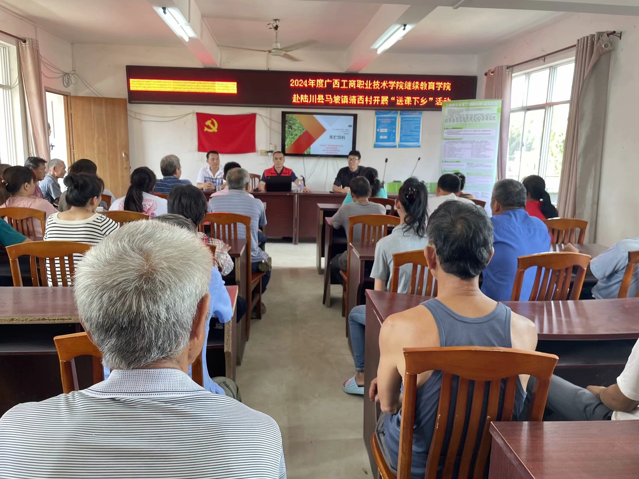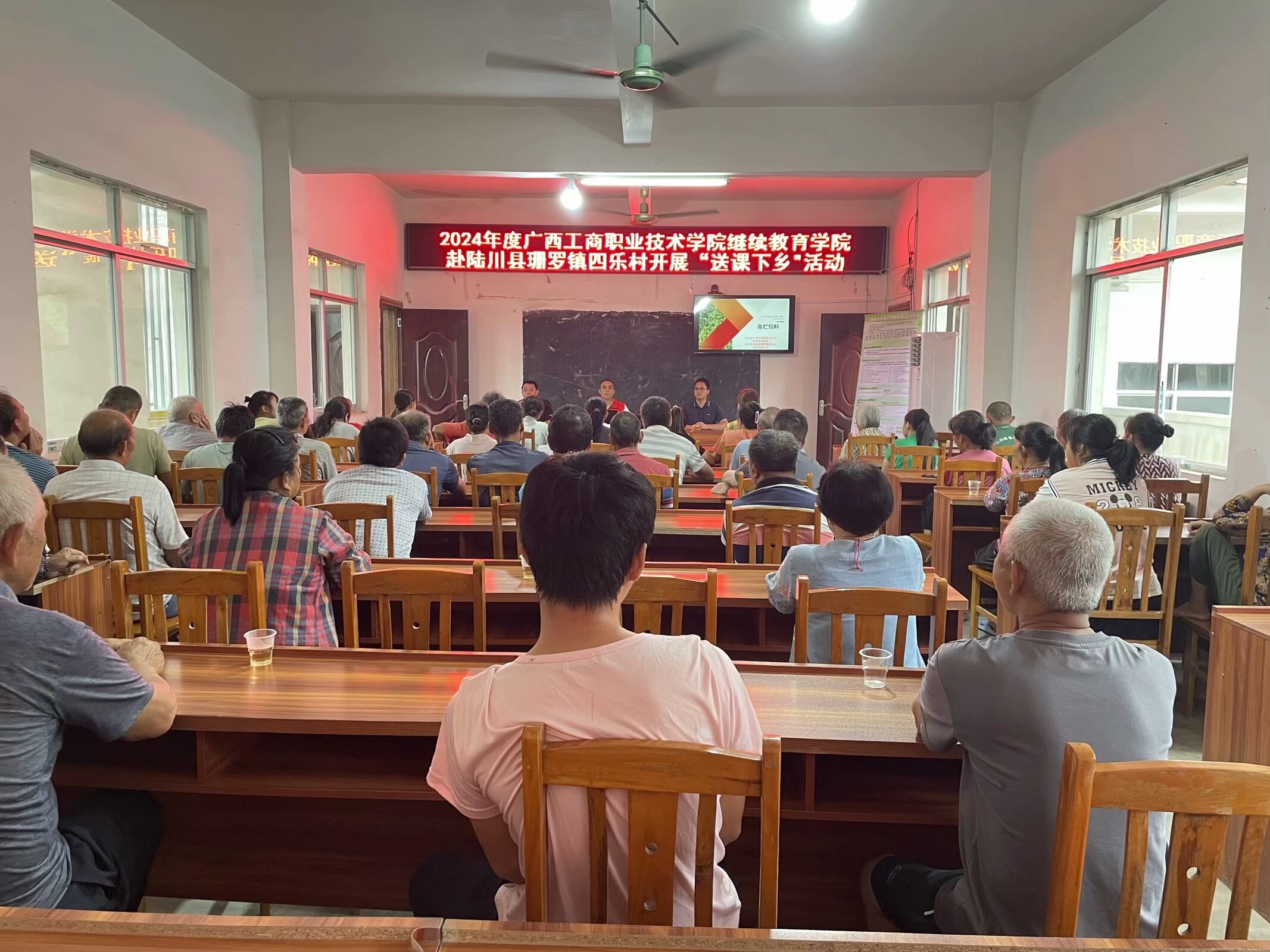 為了更好地服務鄉(xiāng)村振興戰(zhàn)略,充分發(fā)揮繼續(xù)教育學院社會服務職能,2024年5月27-28日,繼續(xù)教育學院赴玉林市陸川縣馬坡鎮(zhèn)靖西村和珊羅鎮(zhèn)四樂村開展“送課下鄉(xiāng)”活動。