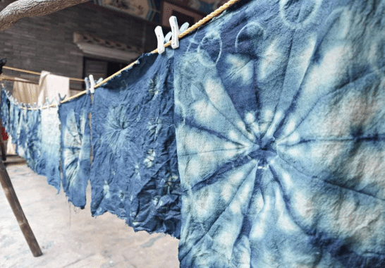 藍(lán)染是中國民間傳統(tǒng)染色工藝,也是廣西壯族人民常用的傳統(tǒng)印染方法之一,通過在布上用針、線施展扎、縫、捆等各種技法,將扎捆好的布料放入染缸中,待充分染色后將布料取出漂洗晾干,就能形成美麗的圖案。