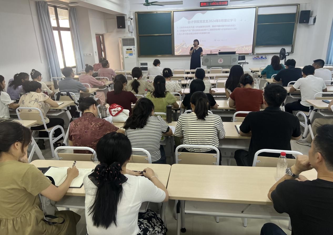 本次理論學(xué)習(xí)會(huì)意義重大,不僅深化了教職工對(duì)國(guó)家和地方重大政策的理解,也激發(fā)了大家將理論知識(shí)轉(zhuǎn)化為教學(xué)實(shí)踐的動(dòng)力。會(huì)計(jì)學(xué)院黨總支將以此次學(xué)習(xí)會(huì)為契機(jī),繼續(xù)引領(lǐng)全體教職工加強(qiáng)理論學(xué)習(xí),提升業(yè)務(wù)能力,為培養(yǎng)適應(yīng)新時(shí)代要求的會(huì)計(jì)人才而不懈努力,共同推動(dòng)會(huì)計(jì)學(xué)院教育事業(yè)高質(zhì)量發(fā)展。
