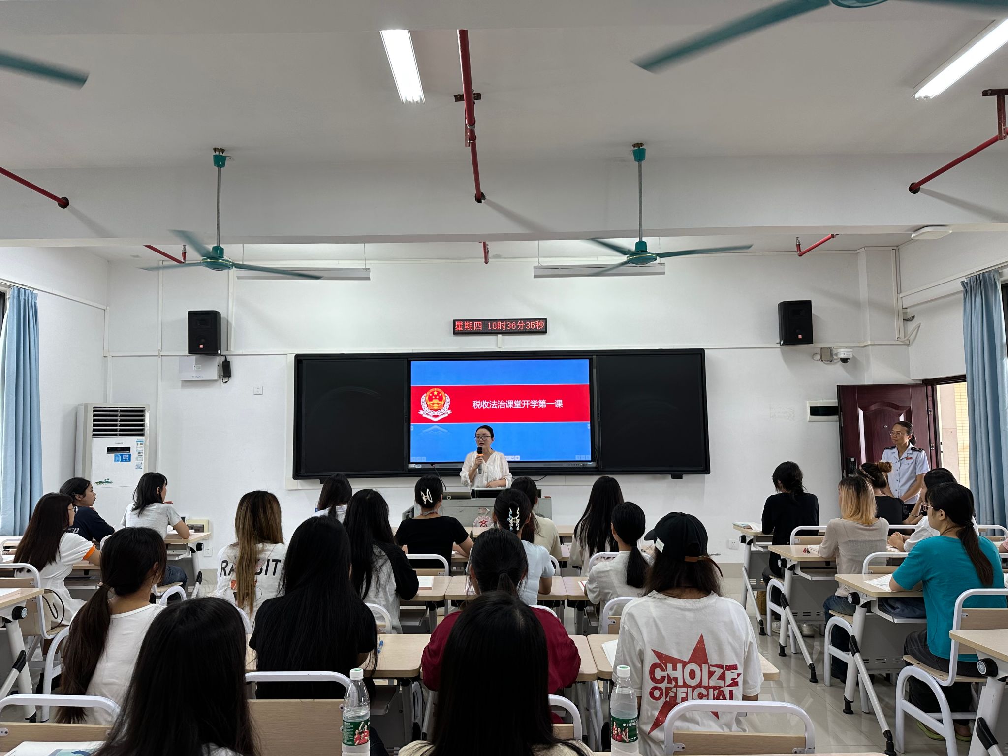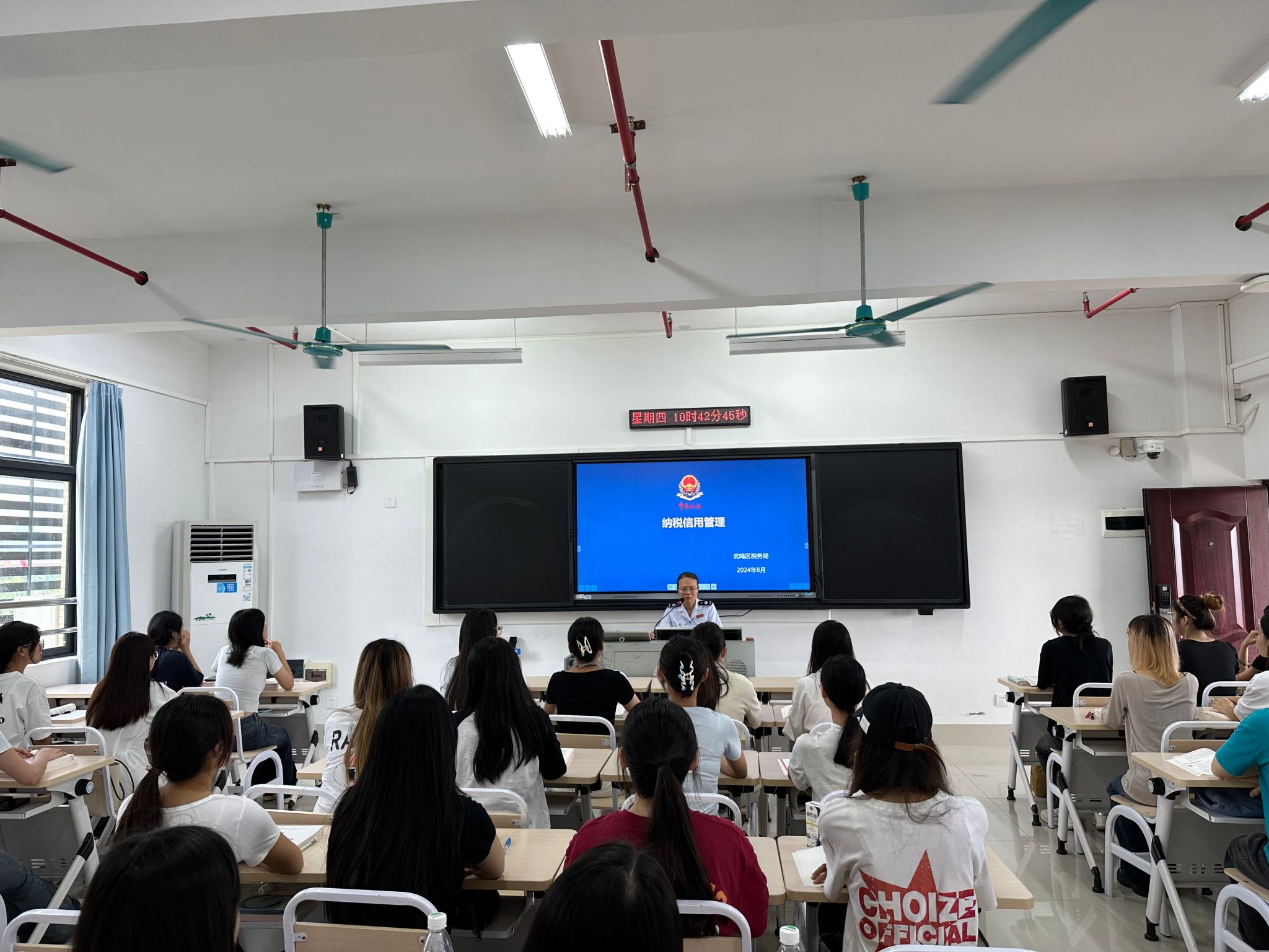 此次開學(xué)第一課是會計學(xué)院黨總支和武鳴區(qū)稅務(wù)局黨委黨建共建的活動之一,促進(jìn)“黨建+業(yè)務(wù)”雙提升。通過納稅信用知識的講解,培養(yǎng)了學(xué)生的誠信精神,提升了學(xué)生專業(yè)素養(yǎng)與法治觀念,激發(fā)了同學(xué)們對稅收學(xué)習(xí)的興趣,對今后同學(xué)們的理論學(xué)習(xí)和實踐運(yùn)用都起到了極大的促進(jìn)作用。同時也強(qiáng)化了校企協(xié)同育人,產(chǎn)教深度融合,提升了育人實效。