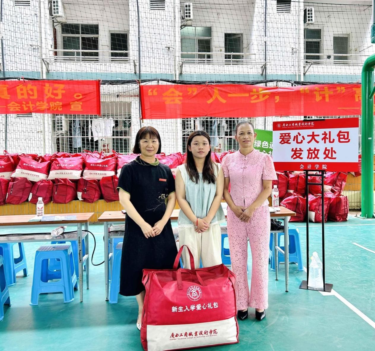 金秋送爽喜迎八方學(xué)子,丹桂飄香共祝美好未來。會計學(xué)院迎來了2024級新生,同學(xué)滿載喜悅和祝福,懷揣理想和憧憬,走進(jìn)校園。學(xué)校為家庭經(jīng)濟(jì)困難新生準(zhǔn)備了“愛心大禮包”,為新生送上入校后的第一份溫暖。9月6日,我院黨總支書記、院長粟衛(wèi)紅以及副院長譚玉娥參加了此次活動,分別在中堯校區(qū)及武鳴校區(qū)給新生們發(fā)放學(xué)校精心準(zhǔn)備的愛心大禮包。