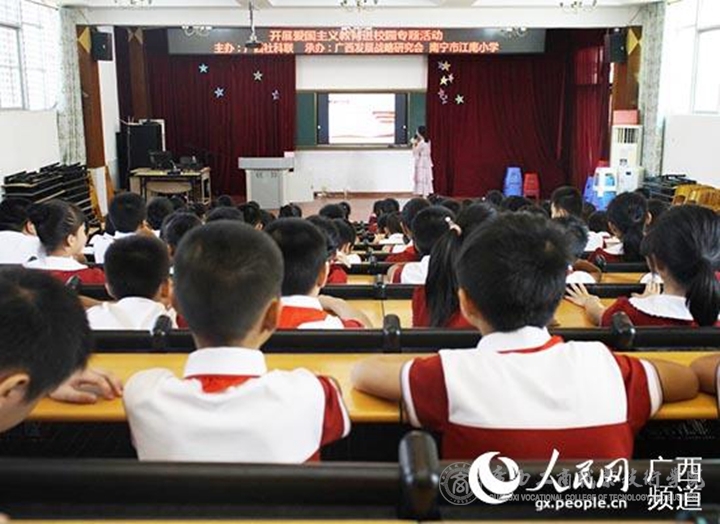 人民網(wǎng)南寧10月12日電 開展愛國主義教育進校園實踐活動,讓學生處處受到愛國主義精神的感染,激勵著一代又一代中華兒女為祖國繁榮發(fā)展不懈奮斗。2019年6月至9月,廣西壯族自治區(qū)社會科學界聯(lián)合會積極推動社會科學普及工作,深入基層開展愛國主義教育進校園系列專題活動,受到了廣大師生的歡迎。