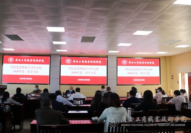 • 2020年4月28日上午,學院黨委理論學習中心組2020年第一次學習會在鵬飛校區(qū)2119會議室召開。學院黨委書記覃武云主持學習會并作中心發(fā)言,院長李維、黨委副書記蒙啟成、副院長安仲文、副院長陳寧春、副院長闕勇平、...