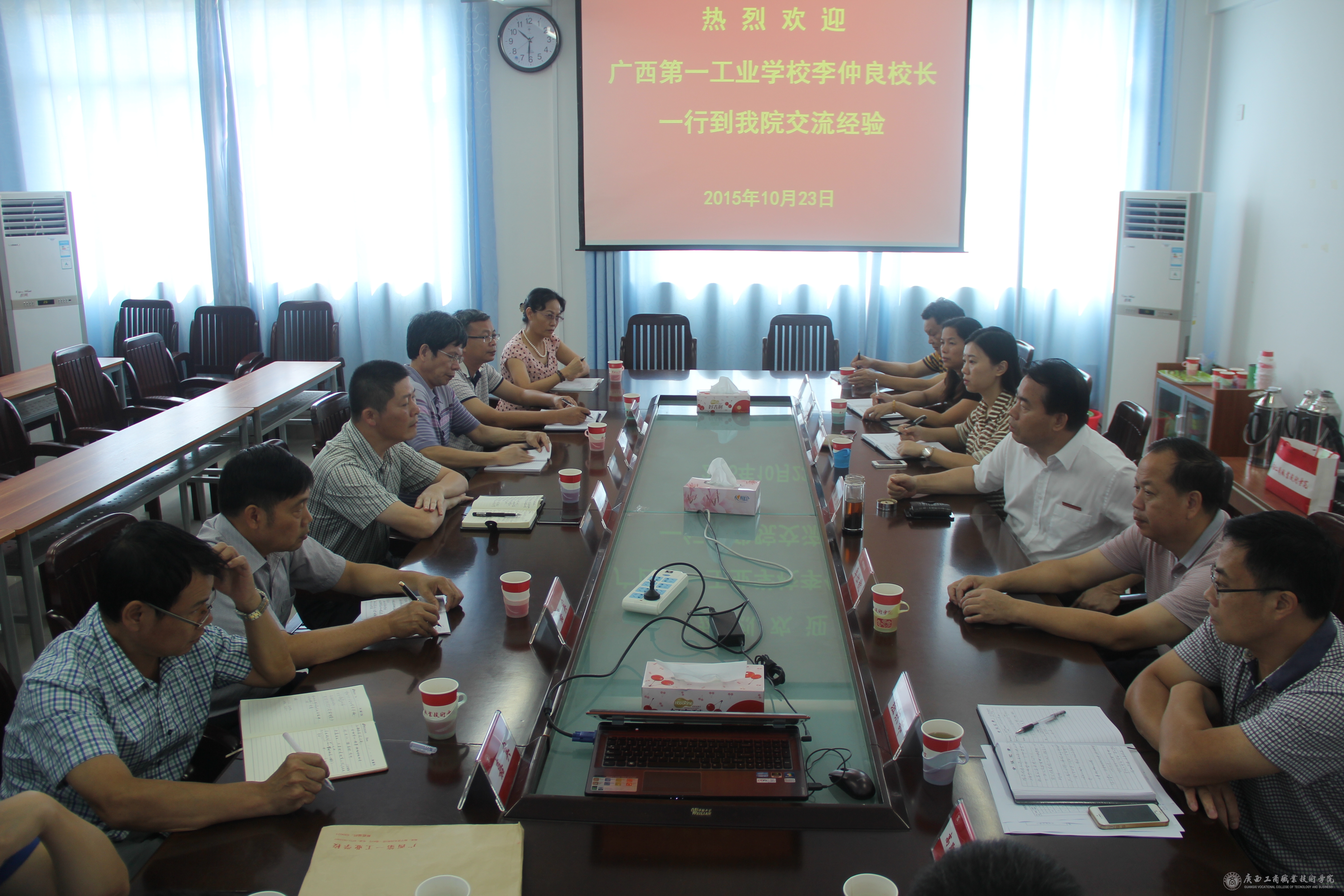 • 10月23日上午,廣西第一工業(yè)學(xué)校李仲良校長一行9人到我院交流經(jīng)驗(yàn)。我院黨委書記覃武云、院長陳杰熱情接待了李仲良校長一行。 隨后雙方在2109會議室,就師資隊(duì)伍、專業(yè)建設(shè)和校園建設(shè)等議題進(jìn)行座談交流。陳杰院...