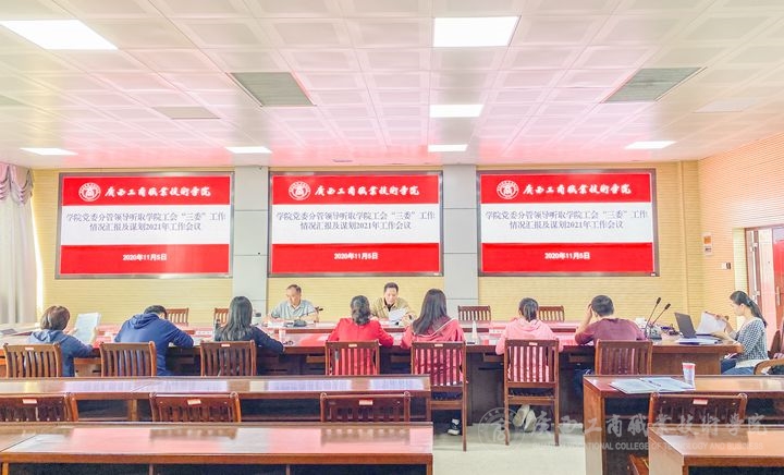 • 2020年11月5日下午,學(xué)院黨委分管領(lǐng)導(dǎo)召開聽取學(xué)院工會(huì)“三委”工作匯報(bào)及謀劃2021年工作會(huì)議,會(huì)議由學(xué)院工會(huì)副主席陳春主持,學(xué)院黨委副書記、工會(huì)主席蒙啟成出席會(huì)議,學(xué)院工會(huì)委員會(huì)、經(jīng)審委員會(huì)、女工委員會(huì)...