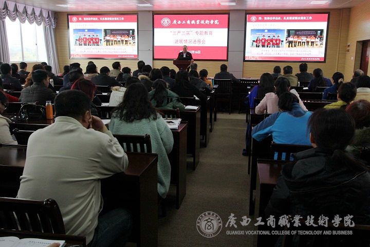 • 2015年12月16日下午2點40分我院在2119教室召開“三嚴(yán)三實”專題教育進展情況通報會。學(xué)院黨委書記覃武云、學(xué)院院長陳杰、副廳級調(diào)研員黃永蓬和學(xué)院全體在職黨員、學(xué)院副高職稱及以上教師、學(xué)院教代會代表等參加了...