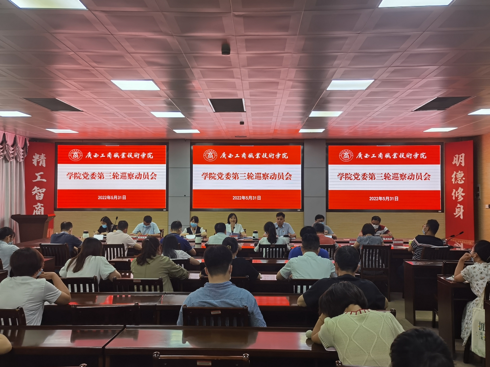 • 5月31日,學(xué)院黨委第三輪巡察動員會在2119會議室召開,啟動對鳴校辦黨支部、國有資產(chǎn)管理處黨支部、會計學(xué)院黨總支、信息與設(shè)計學(xué)院黨總支、圖書館黨支部、信息技術(shù)中心黨支部6個基層黨組織的巡察工作。學(xué)院黨委...