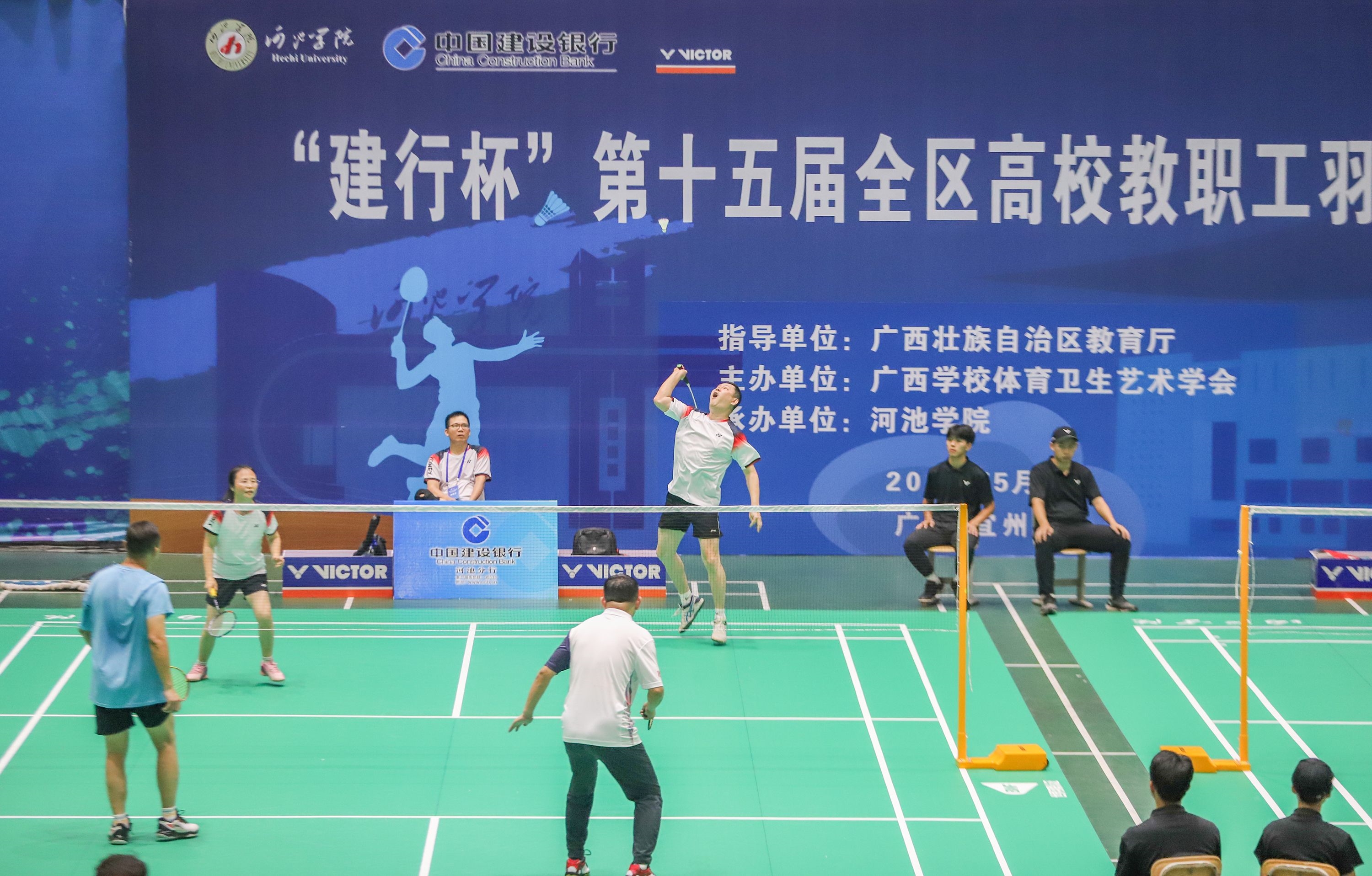 • 廣西“建行杯”第十五屆全區(qū)高校教職工羽毛球比賽于5月29-30日在河池學院火熱開戰(zhàn),比賽吸引了來自全區(qū)各高校的教職工羽毛球愛好者們踴躍參與,我校由副校長陳寧春率隊參賽。(比賽現場)其中由陳寧春副校長、紀...