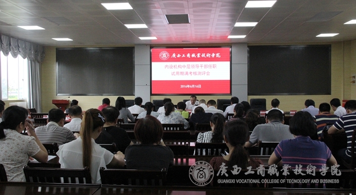 • 2016年6月16日上午9時30分,我院在校本部教學(xué)樓2119視頻會議室召開內(nèi)設(shè)機構(gòu)中層領(lǐng)導(dǎo)干部任職試用期滿考核測評會.學(xué)院黨委副書記蒙啟成、學(xué)院中層領(lǐng)導(dǎo)干部和黨委組織部、監(jiān)察審計室、黨委辦公室(學(xué)院辦公室)等三...