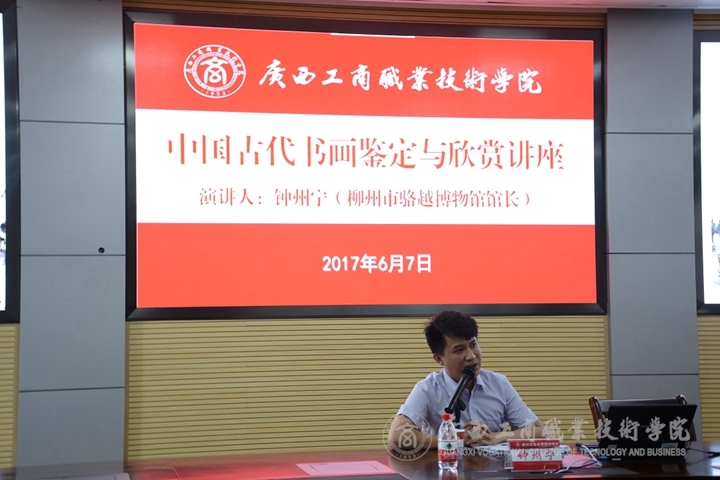 • 為豐富我院師生精神文化生活,2017年6月7日下午,我院在校本部舉辦中國古代書畫鑒定與欣賞講座。講座特邀請柳州市駱越博物館鐘州寧館長進行講解,學院教師和同學們參加本次講座。 會上,...