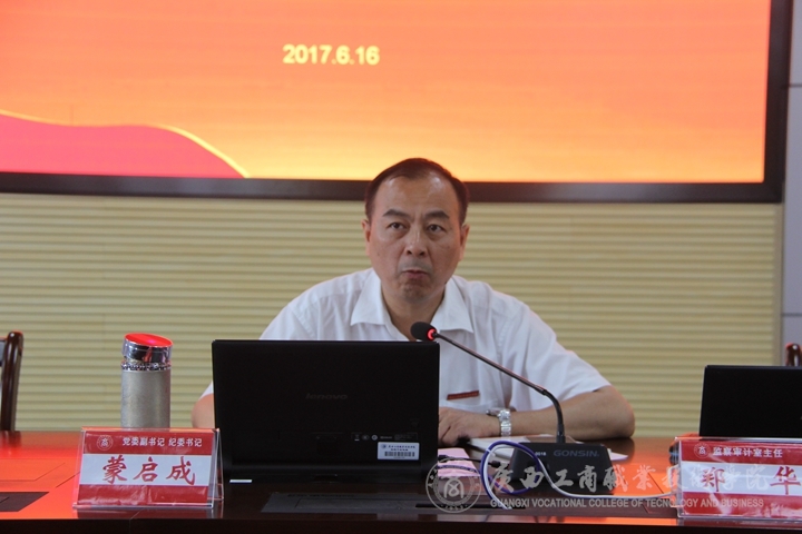 • 2017年6月16日下午,我院在2119會議室舉辦了2017年紀檢干部培訓班。學院黨委副書記、紀委書記蒙啟成同志出席了會議。會議由監(jiān)察審計室鄭華主任主持,學院紀委委員、各黨總支書記、支部書記、紀檢委員、監(jiān)察審計室...