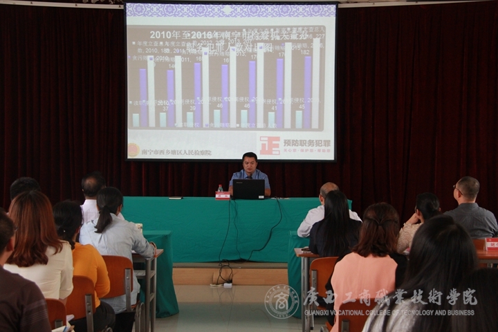 • 按照學院以案明紀工作部署和要求,為提高全體教職員工法律意識,加強預防犯罪能力,2017年10月24日15時,我院在校本部報告廳舉辦了“高校如何預防職務犯罪”主題講座,邀請了南寧市西鄉(xiāng)塘區(qū)人民檢察院反貪污賄賂...