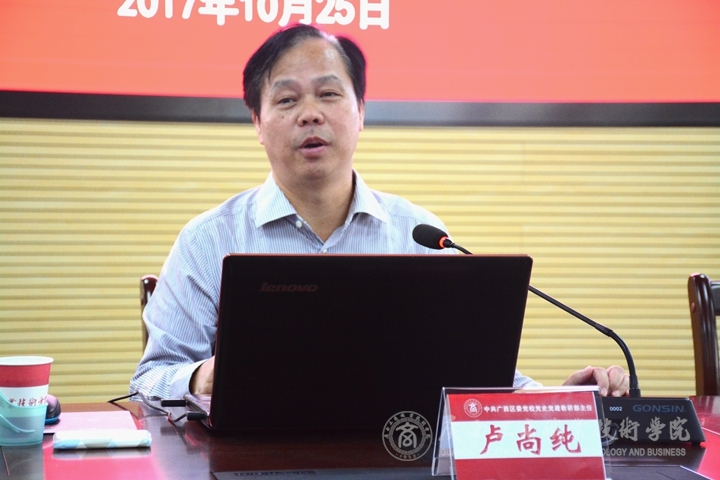 • 2017年10月25日下午15時,由廣西區(qū)委黨校盧尚純教授主講的第二堂廣商院青年教師黨的基本知識專題培訓課在校本部開課,我院全體青年教師參加了此次培訓。培訓課由黨委組織部部長蔣百平主持。 ...