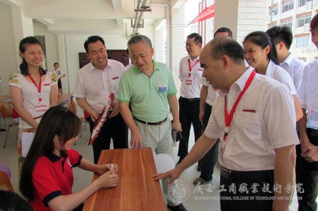 • ??????? 2015年6月27日上午,廣西壯族自治區(qū)教育廳巡視員林寧蒞臨我院2015年畢業(yè)生供需見面洽談會(huì)暨頂崗實(shí)習(xí)企業(yè)推介會(huì)指導(dǎo)就業(yè)工作。我院黨委覃武云書記、陳杰院長(zhǎng)、李維副院長(zhǎng)等學(xué)院領(lǐng)導(dǎo)全程陪同參觀。??????? ...